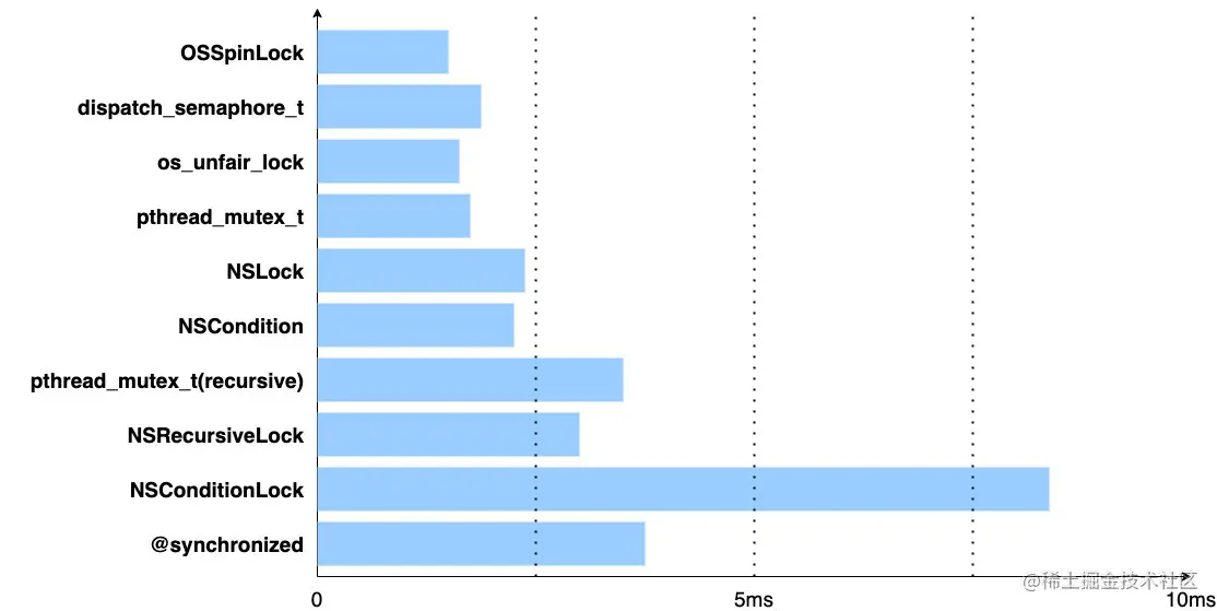 为了测试锁的性能,我们将所有的锁循环进行开锁解锁操作100000次,统计其消耗的时间如下:
