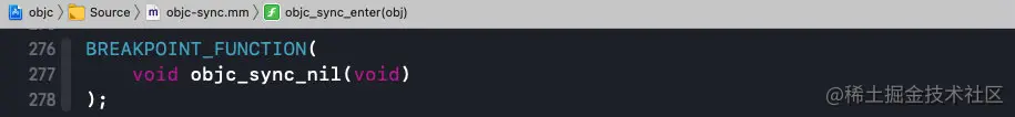那么objc_sync_nil()方法的实现是什么呢?点击发现会跳转到此处: