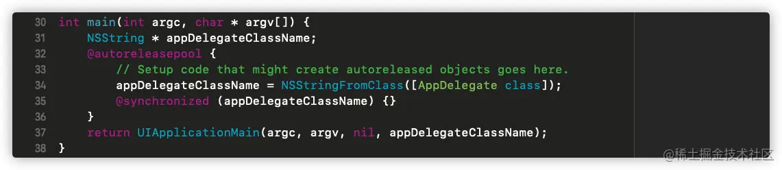 我们先通过clang的方式来看一下cpp文件,为了不被多余的代码侵扰,我们在main.m文件中使用一下@synchronized: