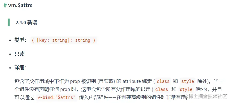 1、inheritAttrs属性和attrs实例方法的参考文章# Vue 2.4.0新增inheritAttrs,attrs详解