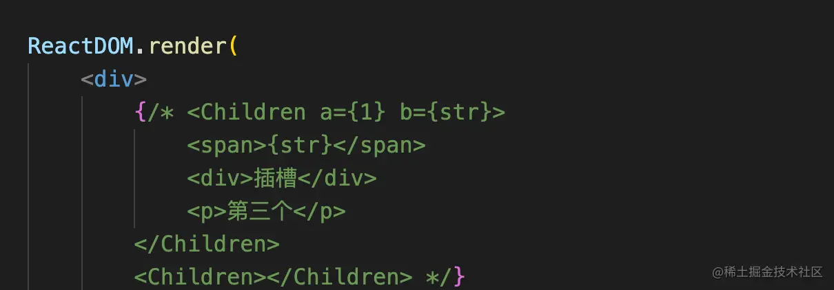- props.childern是接收到的插槽;当插槽子节点只有一个props.children是个对象,当插槽子节点有多个,props.children是个数组,数组的每一项是每一个子节点