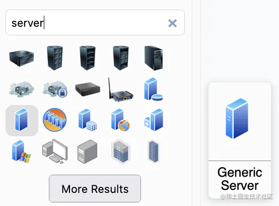 可以直接搜索需要的图形,比如服务器,当然也可以直接粘贴本地或网络图片:
