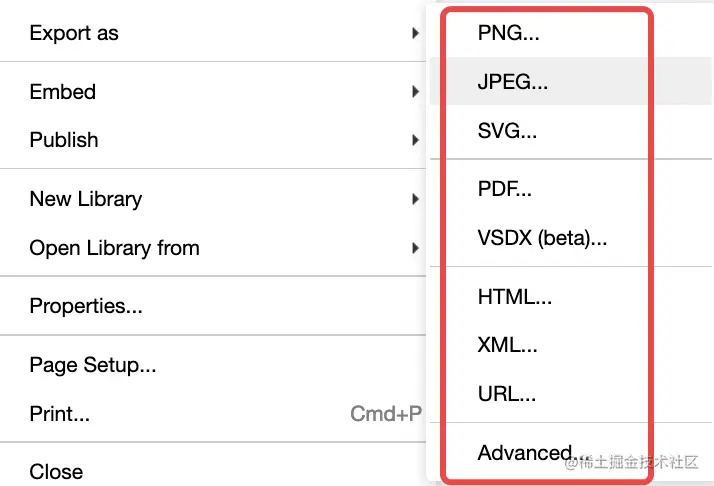 可以将绘制好的图形一键导出为图片、矢量图、PDF、HTML 文档等: