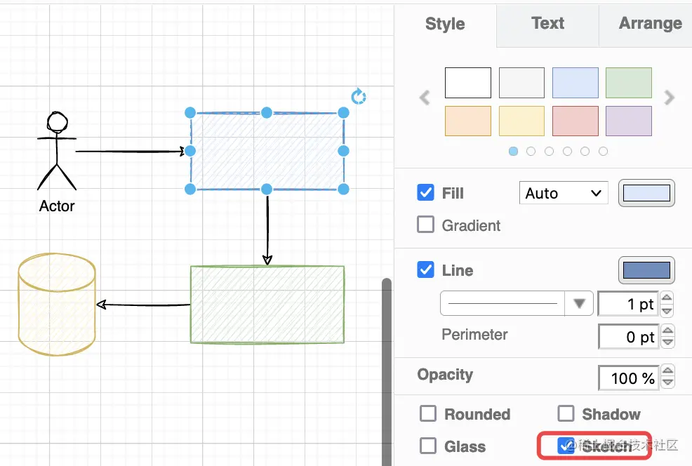 Draw.io 提供了几种默认主题和预设图形风格,比如我最喜欢的手绘风格: