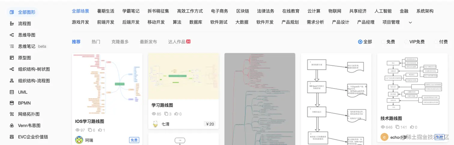 Process On 里提供了大量的绘图模板,大家都可以参考下: