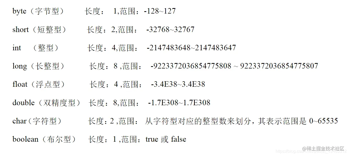 先贴出一张Java八大数据类型大小范围表以供参考: