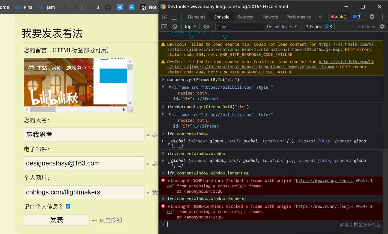 如果在阮一峰的Blog中插入 iframe(cnblogs博文), 会被拒绝qwq...