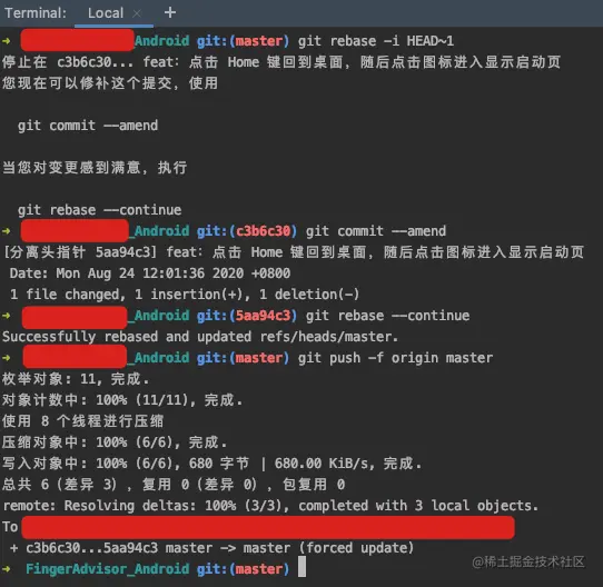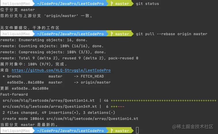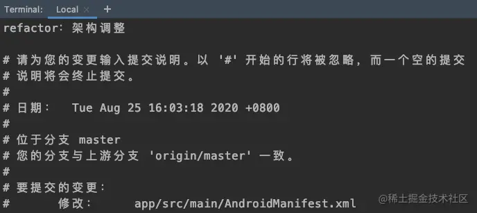 之后就可以看到这条 commit 已经合并到当前 master 分支了,随后进行提交即可~