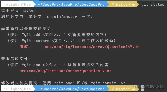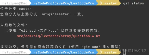 使用 git status 查看当前项目文件状态,如下所示: