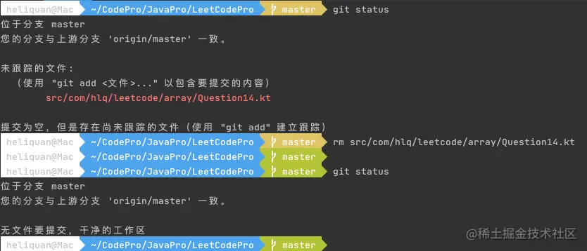 因为没有添加到暂存库,也就是没有使用 git add . 命令,所以这里直接通过 rm 将文件删除即可: