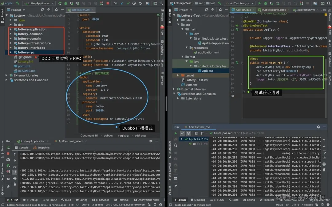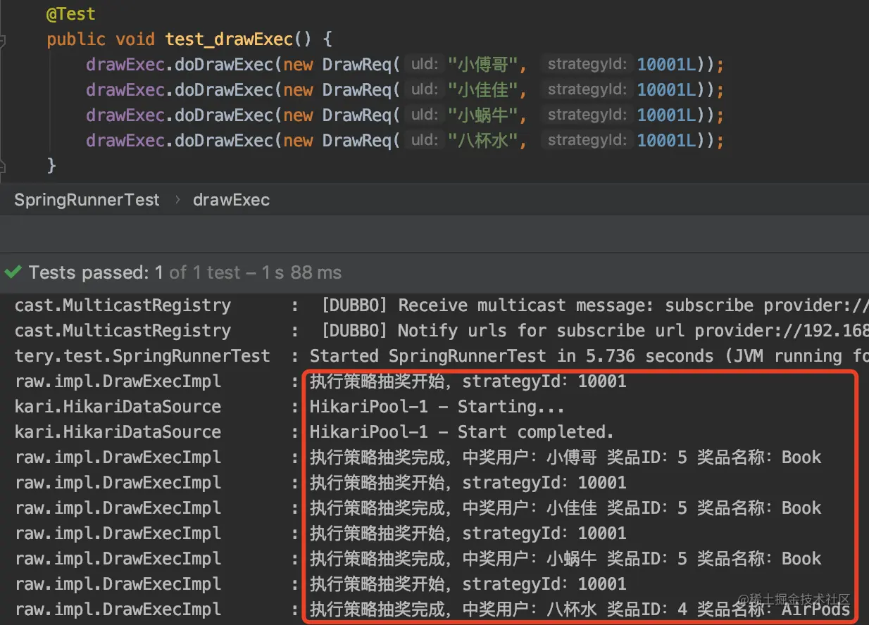 一项代码实战派的傅哥,已经在两个周末的时间折腾出不少内容了,包括:从系统框架的搭建、广播模式Dubbo的配置、库表的设计以及部分功能的实现等,接下来在大家上车后,就可以对着已经完成的内容学习和跟进新内容的实现了。DDD四层系统架构测试案例如图: