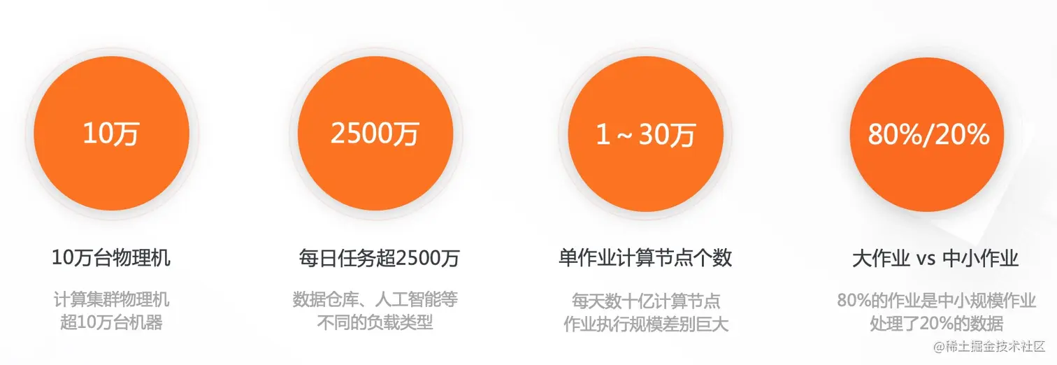 这种空转造成的资源使用的低效,在数据的处理流程上存在barrier算子而无法pipeline,以及在DAG图比较深的情况下会尤为明显。当然对于希望极致优化作业运行时间的场景而言,通过更多的资源消耗,来获取极致的性能优化,在一些场景上是有其合理性的。 事实上,在一些business-critical的在线服务系统中,为了保证服务总是能迅速响应并处理峰值数据,平均个位数的CPU利用率也并非少见。但是对于计算平台这种量级的分布式系统,能否在极致性能以及高效的资源利用率之间,获取一个更好的平衡呢?