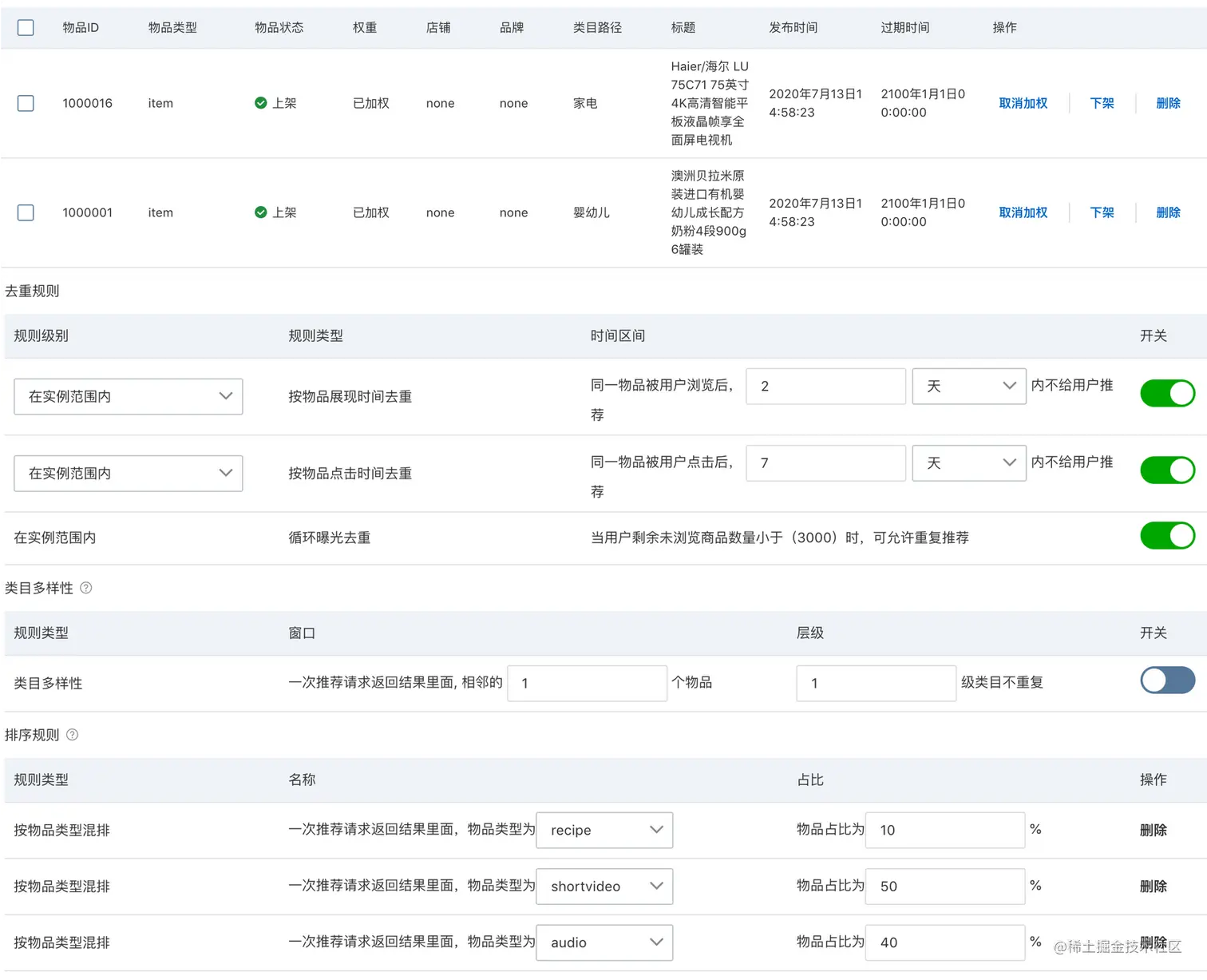 通过设置类目多样性规则,保证推荐的多样性,避免产品单一性。