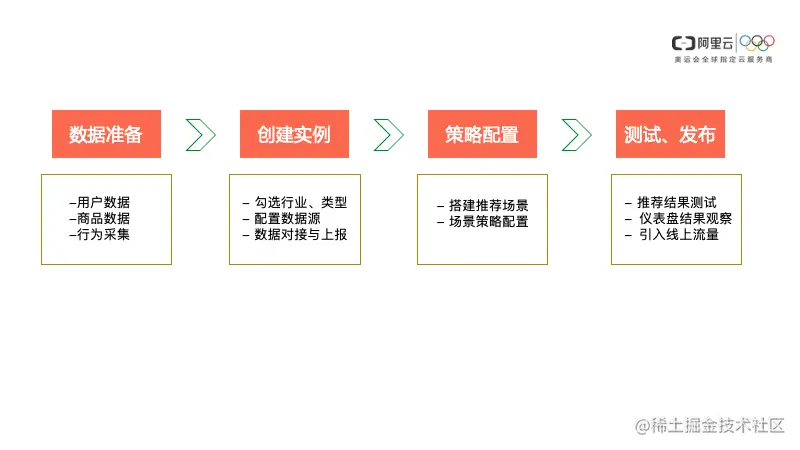 主要分成四个步骤:1、数据准备;2、创建实例;3、策略配置;4、测试、发布。