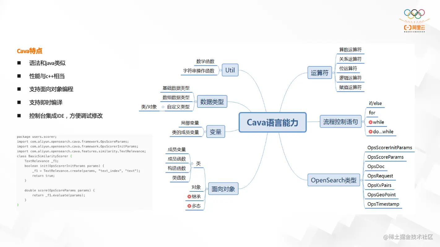 其中,在自定义插件环境,开放搜索提供cava编译语言及其插件。cava是一款阿里巴巴自研的编译语言,它的语法和java类似,性能与C++相当,支持面向对象编程。开放搜索控制台中已经集成了支持cava编译的IDE,用户可以直接在控制台上编译定制cava插件,更方便的进行调试和修改。