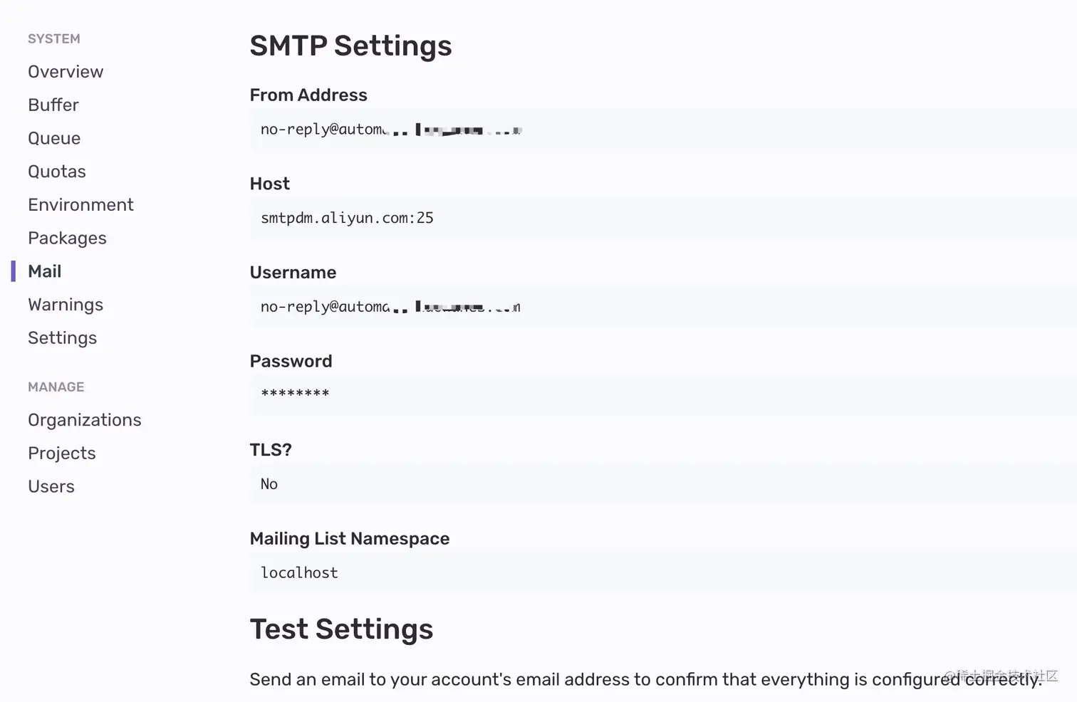 mail.backend: 'smtp' # Use dummy if you want to disable email entirely