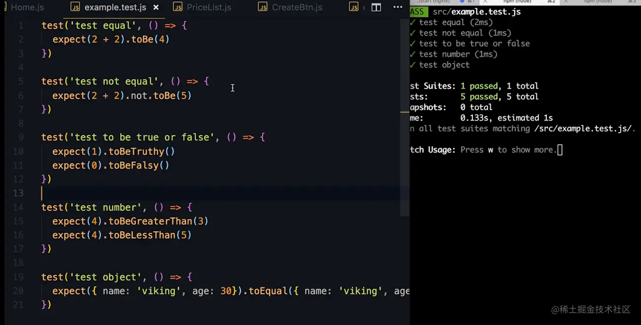 expect(value):要测试一个值进行断言的时候,要使用expect对值进行包裹