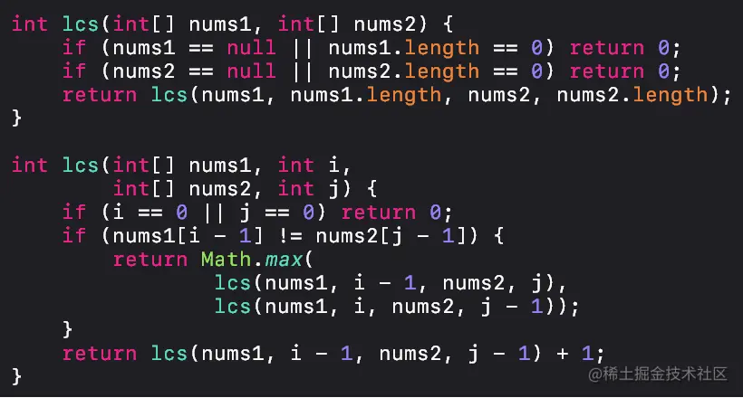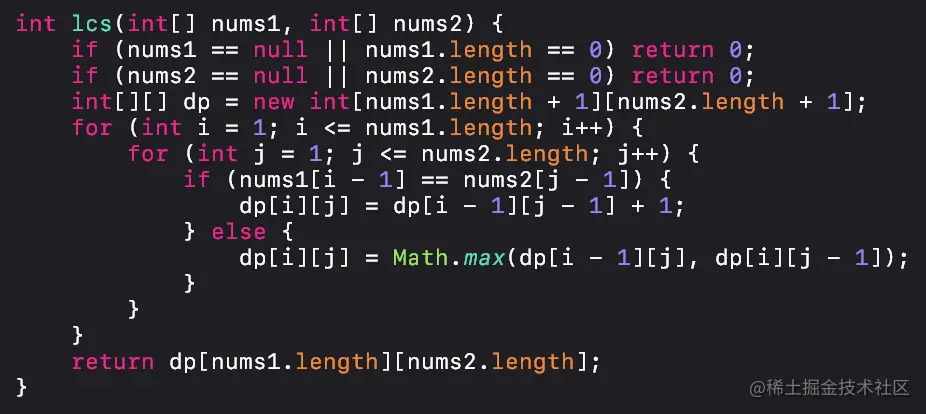 [1, 3, 5, 9, 10] 和 [1, 4, 9, 10] 的最长公共子序列是 [1, 9, 10],长度为 3