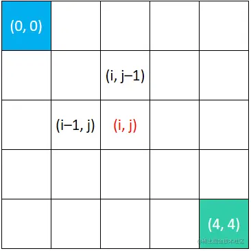 dp(i, j) = dp(i, j – 1) + dp(i – 1, j)