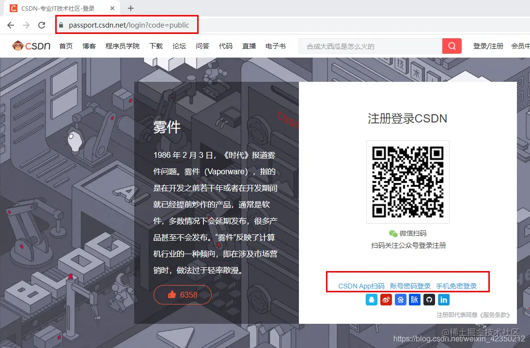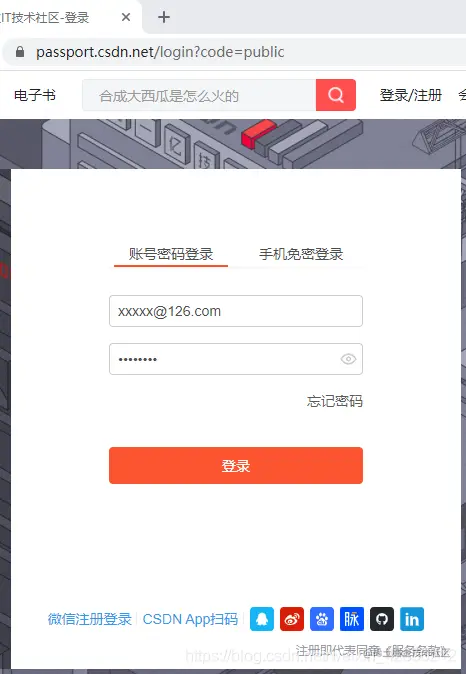 CSDN登录页面如下图