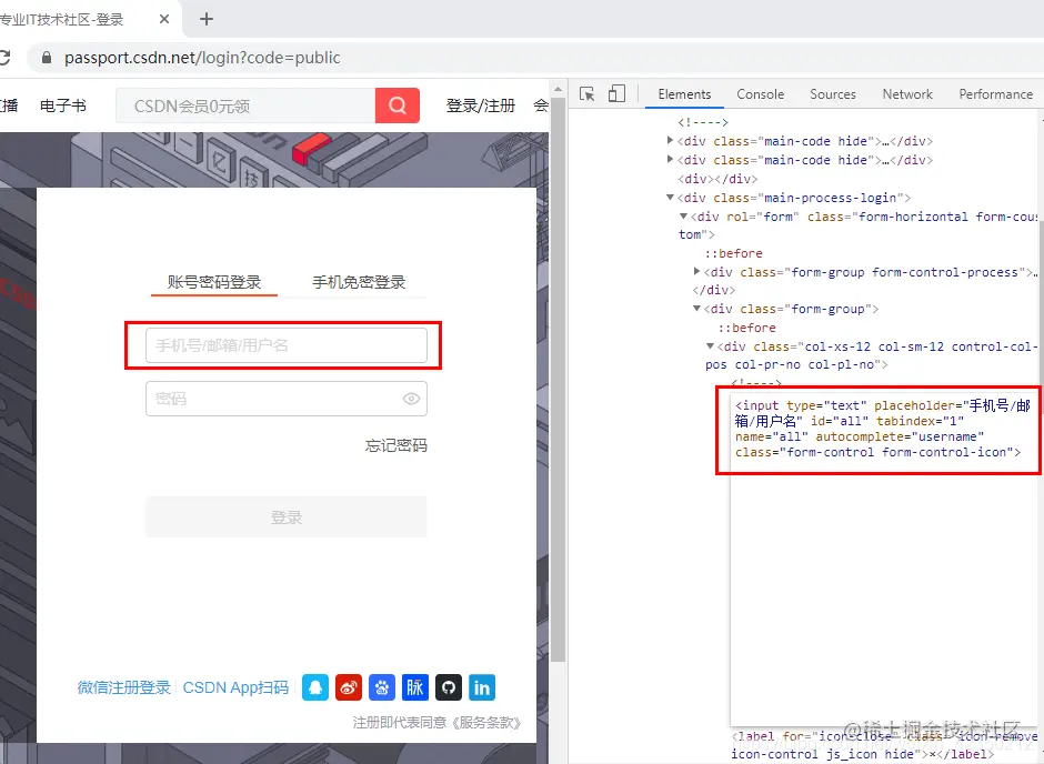 根据页面代码分析,获得用户名的id属性为all,密码的id属性为password-number