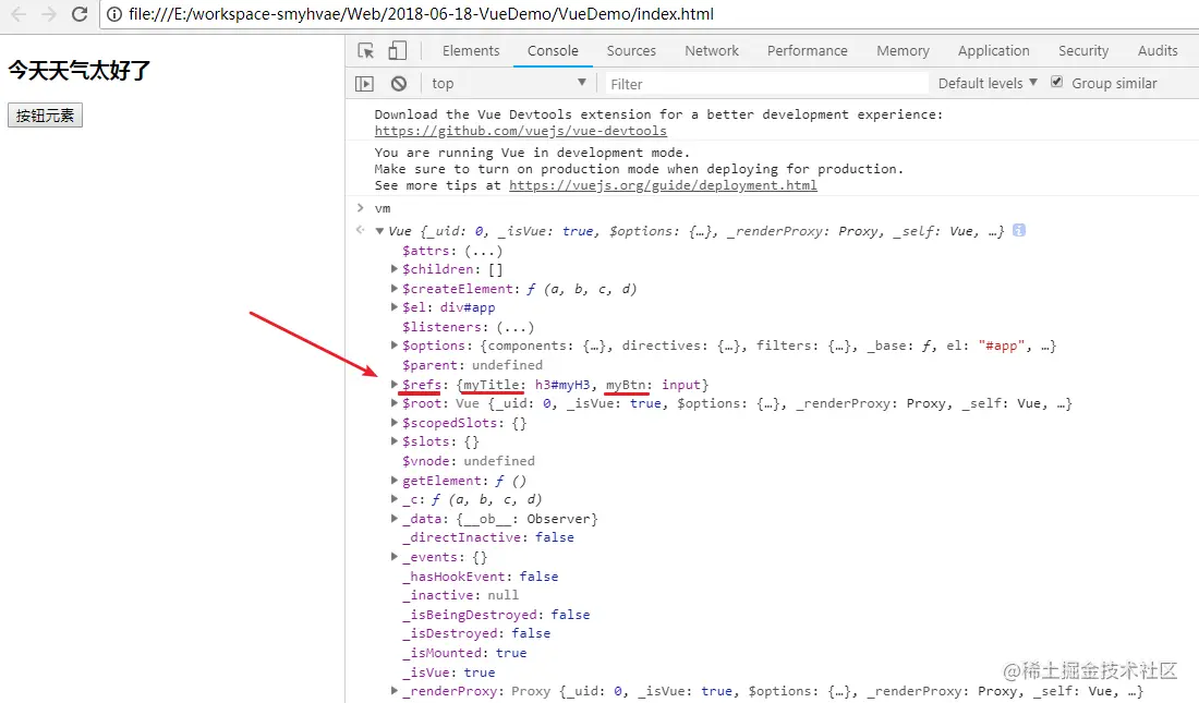 <h3 id="myH3" ref="myTitle"> 今天天气太好了</h3>