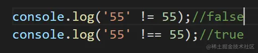 - 不全等操作符,只有在两个操作数在不转换的前提下不相等才返回true