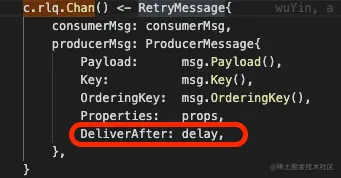 Golang 的 sdk 并没有完成 java sdk 中那样丰富多样的重试机制,但是却简单粗暴直接开放了 NackRedeliveryDelay 原始延迟时间的参数,这样方便了各种策略的定制化开发。