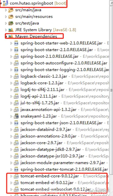 打开一个SpringBoot项目,我们发现,有tomcat的依赖