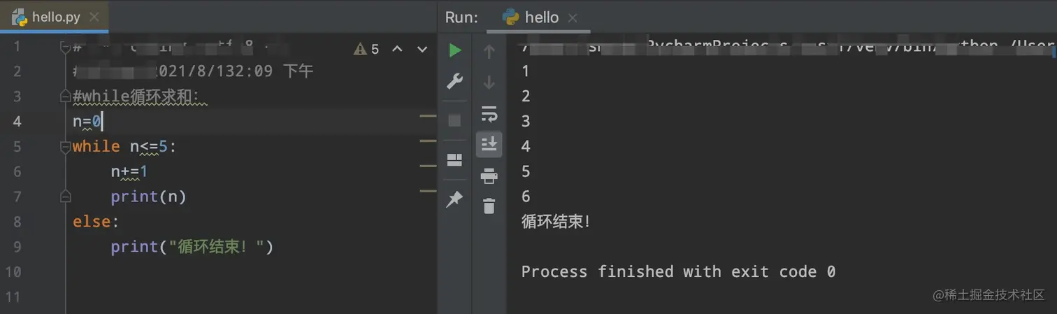 n+=1 print(n)else: 当n>5时跳出循环,执行else内容 print("循环结束!")\