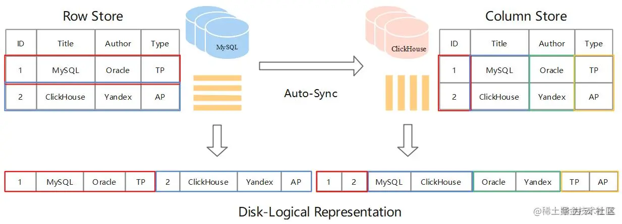 MySQL存储采用的是Row Store,表中数据按照 Row 为逻辑存储单元在存储介质中连续存储。这种存储方式适合随机的增删改查操作,对于按行查询较为友好。但如果选择查询的目标只涉及一行中少数几个属性,Row 存储方式也不得不将所有行全部遍历再筛选出目标属性,当表属性较多时查询效率通常较低。尽管索引以及缓存等优化方案在 OLTP 场景中能够提升一定的效率,但在面对海量数据背景的 OLAP 场景就显得有些力不从心了。