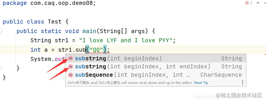 要特别注意,方法签名上有两个参数的substring(int beginIndex, int endIndex)方法