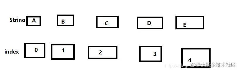 可以从图示中看出,索引下标从0开始。假如我们要获取字符C,则为方法传入参数2即可: