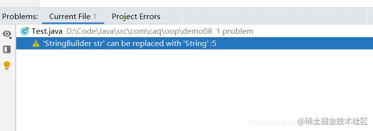 提示内容说可以将 StringBuilder 类型可以替换为 String 类型,也就是说可以将上边地代码改为: