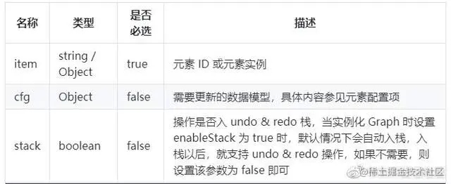 更新元素,包括更新数据、样式等。若图上有 combo,使用该函数更新一个节点位置后,需要调用 updateCombo(combo) 以更新相关 combo 的位置。