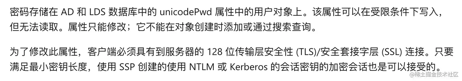 这个地方感觉还是有一些误区的,通过LDAP修改unicodePwd确实需要在加密的连接中操作,但LDAPS并不是必须的,像powermad.ps1在加密LDAP中添加机器账户同样可以成功,并且非常稳定