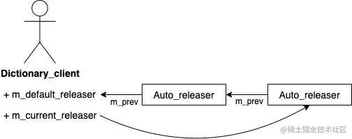 Auto_releaser 是一个 RAII 类,基本上在使用 client 访问 DD cache 前都会做一个封装,保证在整个 Auto_releaser 对象存在的作用域内,所获取到的 DD cache 对象都会在局部缓存中存在不释放。Auto_releaser 包含需要 release 的对象 registry,通过 auto_release() 函数收集着当前 client 从共享缓存中获取到的 DD cache 对象,在超出其作用域进行析构时自动 release 对象,从局部缓存 committed 的 registry 中移除对象,并且在共享缓存中的引用计数递减。