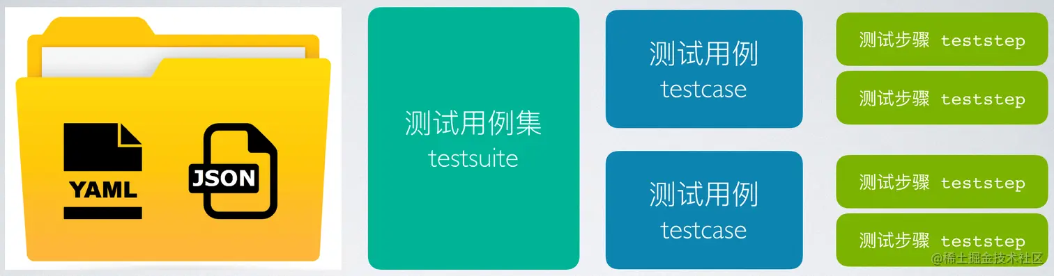 testsuite):对应一个文件夹,包含一个或者多个测试用例文件(YAML/JSON) - 测试用例(
