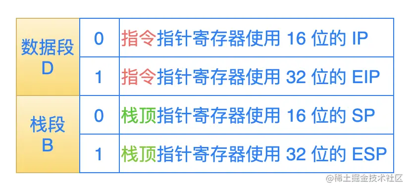 D/B (bit22):用来决定数据段 or 栈段使用的偏移寄存器是 16 位 还是 32 位。