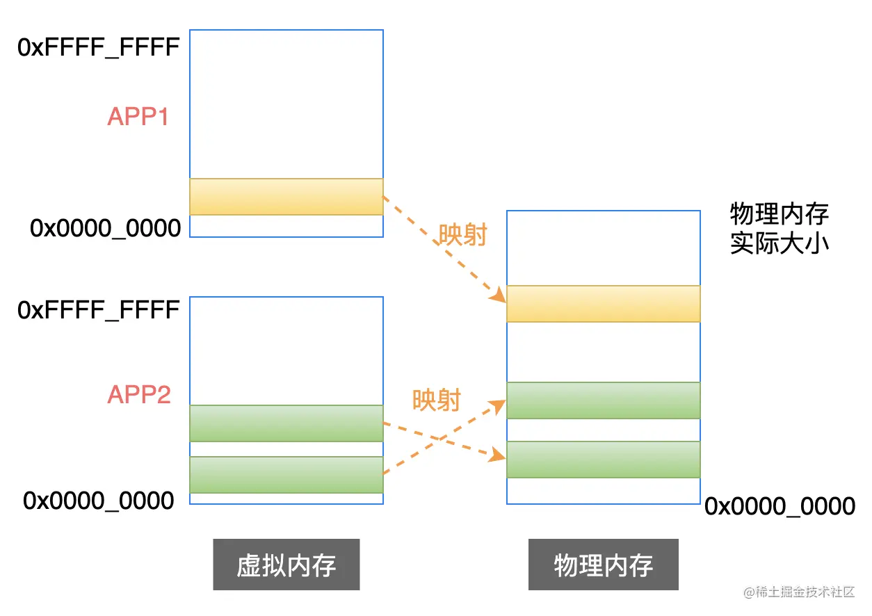 这些应用程序在虚拟内存中的代码段、数据段等等,最终都是要映射到物理内存中的。