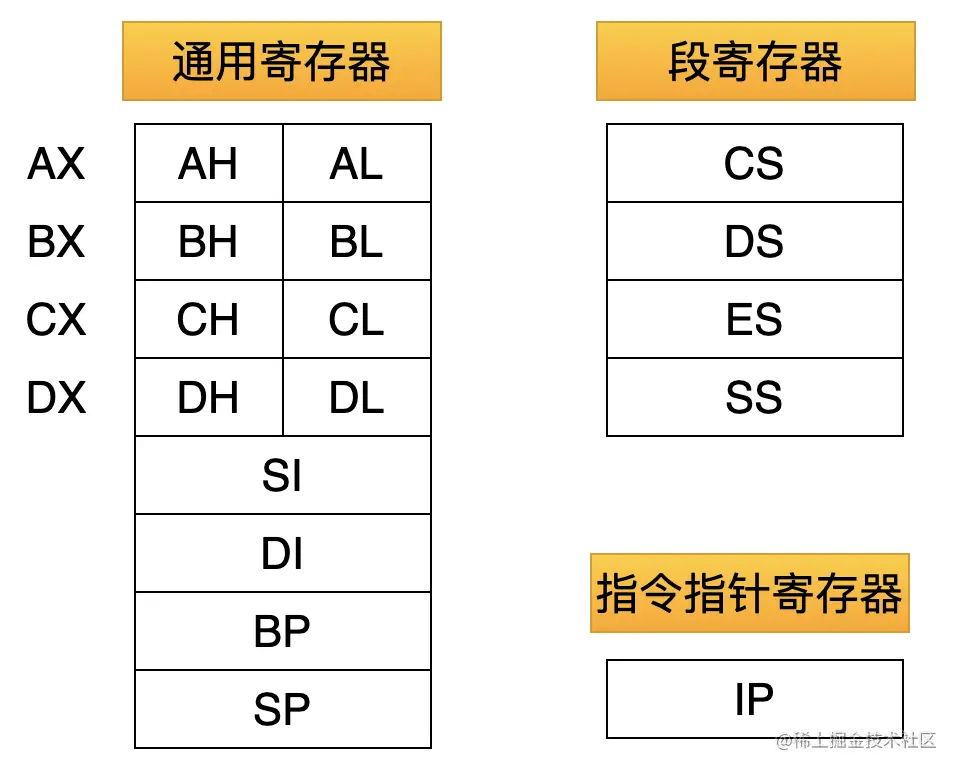 还记得我们第 1 篇文章Linux 从头学 01:CPU 是如何执行一条指令的?中的寄存器示意图吗?
