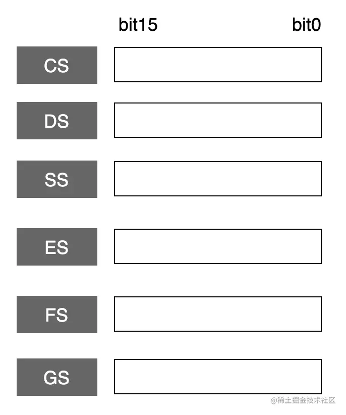 以上这些寄存器都是 16 位的,在这种模式下,对内存的访问只能分段进行。