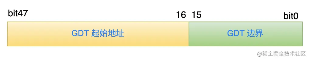 在处理器的内部,有一个寄存器:GDTR (GDT Register),其中存储了两个信息: