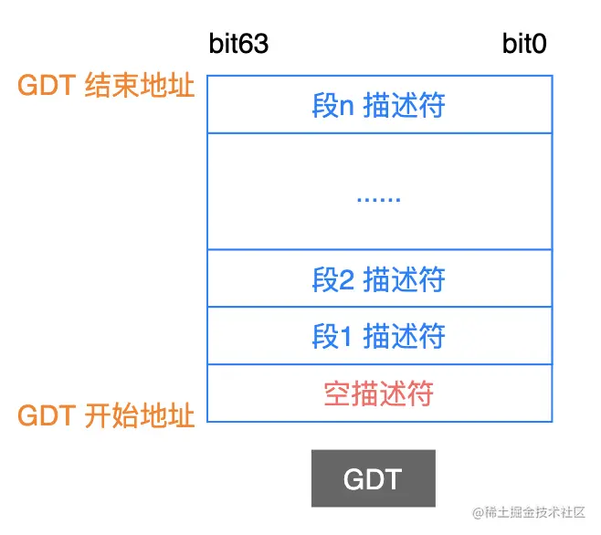 而对于 GDT 表而言,它的起始地址不是固定的,而是可以放在内存中的任意位置。