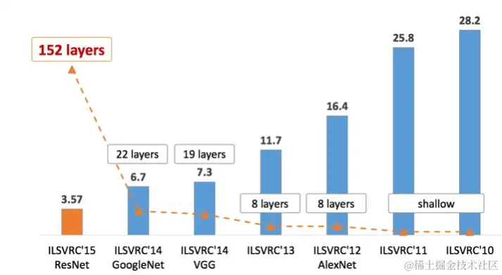 上面那图是ILSVRC历年的Top-5错误率,我们会按照以上经典网络出现的时间顺序对他们进行介绍。