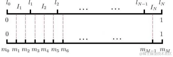 在采样前,我们将这段长度为1的线段划分成MM等份,这里M>>VM>>V,这样可以保证每个词对应的线段都会划分成对应的小块。而M份中的每一份都会落在某一个词对应的线段上。在采样的时候,我们只需要从MM个位置中采样出negneg个位置就行,此时采样到的每一个位置对应到的线段所属的词就是我们的负例词。