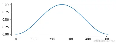 | 12 | import scipy.signal as signal``pl.plot(signal.hanning(``512``)) |