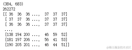 上面提到了两种获取灰度图的方式,读进来的灰度图的矩阵格式是(高度,宽度)。