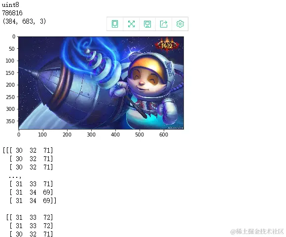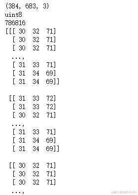 值得注意的是,opencv读进来的图片已经是一个numpy矩阵了,彩色图片维度是(高度,宽度,通道数)。数据类型是uint8。